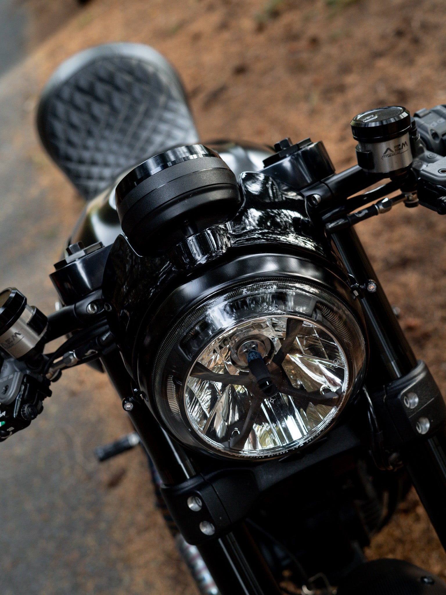 The solution is here... Tidy up the front end of your scrambler with our CNC machined from high grade aluminum. this top triple clamp with allow you to center the speedo and tidy up all the cockpit area. The clamp has the option of either clip on's on riser bars. The kit includes brackets for the relocated ignition, speedo & headlight surround. Anodized gloss black or via "special order" another anodized color.
